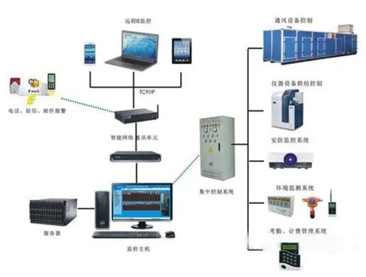 智能化实验室是综合计算机、信息通信等方面的最先进技术,使建筑物内的电力、空调、照明、防灾、防盗、运输设备等协调工作,实现楼宇管理自动化(BA)、通信自动化(CA)、办公自动化(OA)、安全保卫自动化系统(SAS)和消防自动化系统(FAS),将这5种功能结合起来的实验室建筑,能够实现综合自动化、信息化,使大楼的用户获得了安全、高效、舒适、便利的建筑环境和办公环境,达到节能减排、提高效率的目的。
