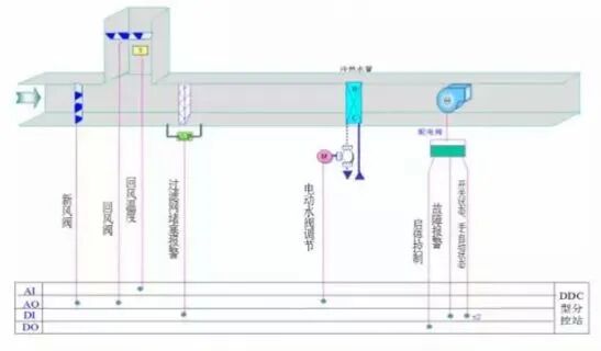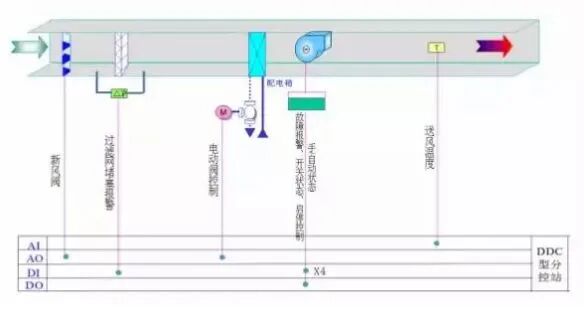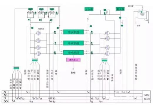 ▲ 实验室控制系统发展结构图 楼宇自动控制系统针对实验室内各种机电设备进行集中管理和监控。主要包括:空调及新风系统、送排风系统、冷冻站系统、热交换站系统、变配电系统、照明系统、给排水系统、电梯系统及消防系统等。在整个楼宇范围内,通过整套楼宇自动控制系统及其内置最优化控制程序和预设时间程序,对所有机电设备进行集中管理和监控。在满足控制要求的前提下,实现全面节能,用控制器的控制功能代替日常运行维护的工作,大大减少日常的工作量,减少由于维护人员的工作失误而造成的设备失控或设备损坏。 BAS系统全称楼宇设备自控系统(Building Automation System-RTU),是以一台微机为中心,由符合工业标准的网络,对分布于监控现场的区域智能分站(即DDC)进行连接,通过特定的末端设备,实现对楼宇机电设备集中监控和管理的专业楼宇自动化控制系统。 系统的目标是对实验室内大多数机电设备采用现代计算机技术进行全面有效的监控和管理,确保实验室内所有设备处于高效、节能、合理的运行状态。通过对实验室进行监控与管理,为实验人员创造更舒适安全的环境。 一般地,对于一幢现代化楼宇,如果选用一套先进的楼宇自动控制系统,并由专业的技术人员编制的优化软件进行控制,业主可以得到: 1、由现场控制器全面自动控制所有机电设备,达到一些无法由手动实现的控制功能。 2、在中央控制室内,在中央工作站上可以直接监视所有的机电设备,通过监视报警状态了解所有的机电设备是否正常运行,并可以实现记录、打印报表等管理功能。 3、减少日常运行维护的工作量,进而减少日常运行维护人员。 4、通过最优化控制程序和预设时间程序控制对所有机电设备,实现全面节能,最优的节能效果可达45%。 智能通风系统由数字化节能风机、通风管道、可调节的风口末端、分体式能量回收设备、新风处理设备、智能变风量末端、空气品质感应子系统及智能中央控制子系统等组成,系统综合性能优于传统通风系统。 智能通风系统具有保障室内空气品质,提高建筑通风安全,节能效果明显、运行管理智能化程度高等特点。 智能通风系统可以根据建筑功能和设计需要,集成相关设备及部件组成系统,实现本地和远程智能化控制管理,既满足建筑室内通风功能需求,保障通风安全,又节能降耗。系统可智能感应室内空气品质(或温度、压力等参数),自动控制主风机和支路风机转速,调节送、排风量二可选用将分体式能量回收机组、新风机组与排风机组连成环路,以乙二醇水溶液为能量回收介质,实现排风能量的回收利用。该系统特别适用于空调系统与各空间功能及空气品质要求不同、污染程度不一的建筑(如大型医院建筑)。 ▲ 实验室智能通风系统 空调机组 风机控制:风机由RTU系统按每天预先编排的时间及需求来控制风机的启停并记录运行时间累积。在配电回路故障条件下禁止开机。 温度控制:根据测量的回风温度与设定值的偏差,进行计算,经比例积分微分(PID)规律控制水调节阀,在夏季工况下,温度高于设定温度时开大水阀,温度低于设定温度时关小水阀,使送风温度维持在设定的范围内。 风门控制:根据测量到的室内外温度,进行计算比较,采用经济运行方式,在满足卫生许可条件下,尽量采用最小新风比例,充分利用室内回风,过渡季节充分利用室外空气的自然调节能力,以达到节省冷量的消耗,同时满足空调的要求。 压差报警:进行过滤网压差检测与阻塞报警。 联动控制:风机、水阀、风门联动控制,在关闭风机时关闭水阀和风门。 检测:回风温度,室外温度,风机状态,手自动状态。 报警:设备故障报警。故障报警同时打印维修派工单,及在上位机反映。 中央监控显示打印:参数,状态,报警,动态流程图(设定值、测量值、状态等)。 ▲ 空调机控制原理图 ▲ 风机控制原理图 新风机组 风机控制:风机由RTU系统按每天预先编排的时间假日程序来控制风机的启停并记录运行时间累积。在配电回路故障条件下禁止开机。 温度控制:根据要求在设置室外温度检测点,系统将根据测量的室外温度、送风温度与设定温度,进行计算,经比例积分微分(PID)规律控制冷水调节阀,温度太高时开大冷水阀,温度太低时关小冷水阀,使送风温度维持在设定的范围内。 检测: 送风温度,室外温度,风机状态,故障、手自动状态,送风管静压值,风机速。 报警: 风机故障报警。故障报警同时打印维修派工单,及在上位机反映。中央监控显示与打印:参数,状态,报警,动态流程图(设定值、测量值、状态等)。 ▲ 新风机控制原理图 冷水机组系统的监控,RTU系统按每天预先编排的时间假日程序来控制冷冻系统的启停和监视各设备的工作状态。 负荷控制:测量冷冻水供回水温度、回水流量,计算用户的实际冷负荷,系统根据计算结果控制冷水机组开启的台数及冷水机组的制冷量,从而实现节能的目的。 压差控制:根据冷冻水供回水压差控制旁通阀的开度,以保证系统供回水温度的平衡。 设备群控:冷水机组系统的群控功能,根据负荷自动启/停冷水机组,并具有设定和修改控制参数功能。冷水机组内的各种状态与过程参数将通过标准接口由冷水机组统上的控制器读取。系统显示冷冻水泵的运行状态和故障报警。 监测:冷水机组系统的运行状态,运行时间累积,各环节水的温度、流量、水位、