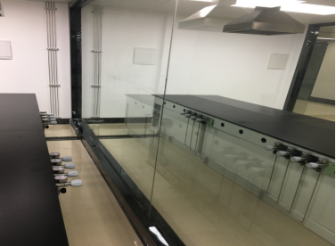 使用易燃易爆气体的实验室内及钢瓶间均设置了气体泄漏报警探头,根据气体的特性,不同气体的探头安装位置也有所不同。根据探头的有效侦测范围大型实验室内设置了多个探头以避免侦测死角。